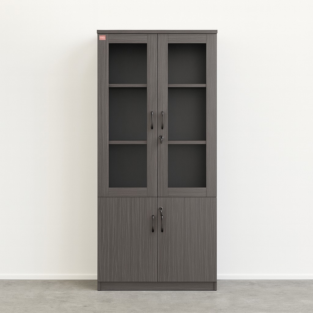 Buy a 2-door wooden office cabinet with glass and concealed storage, ideal for files and office organization in Kenya.
