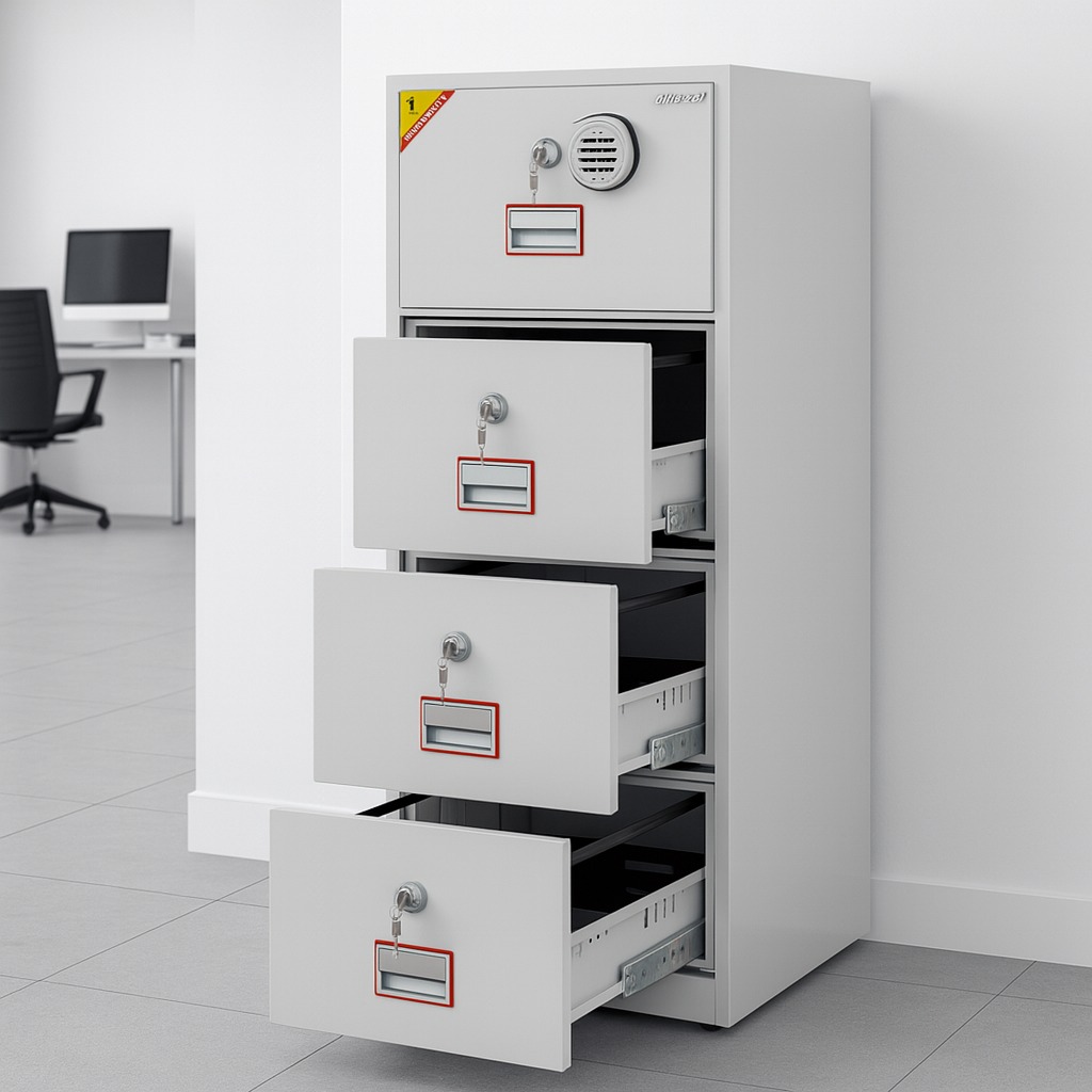 Buy a 4-Drawer Fireproof Diplomat Safe with digital keypad and key override, designed to protect important documents in offices and institutions across Kenya.