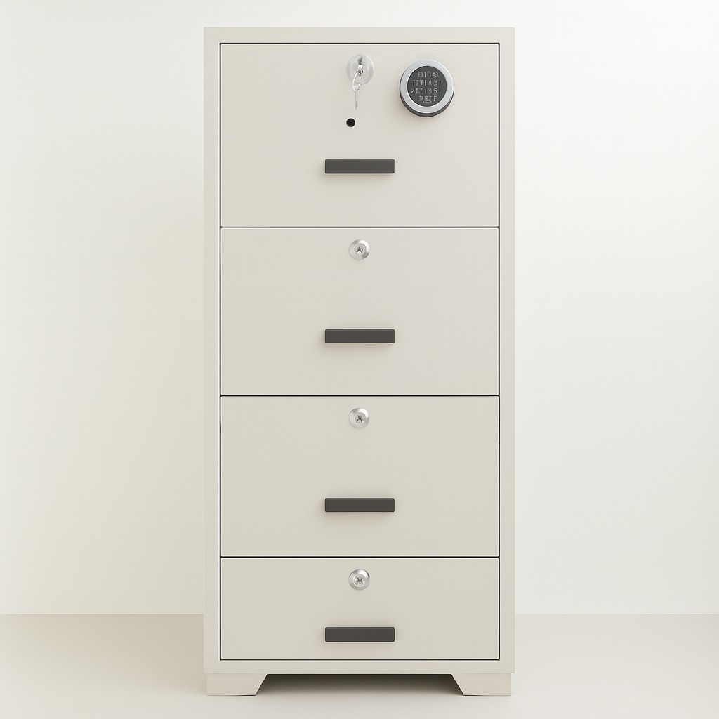 4-Drawer Fireproof Filing Cabinet – Off-White with Combination & Key Locks