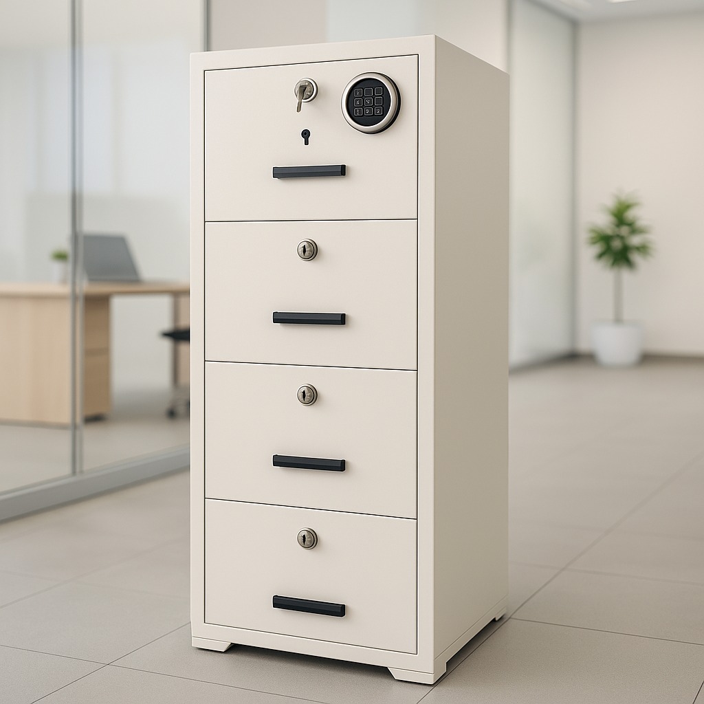 A heavy-duty, fire-rated filing cabinet built to protect critical documents while keeping daily filing neat and accessible.