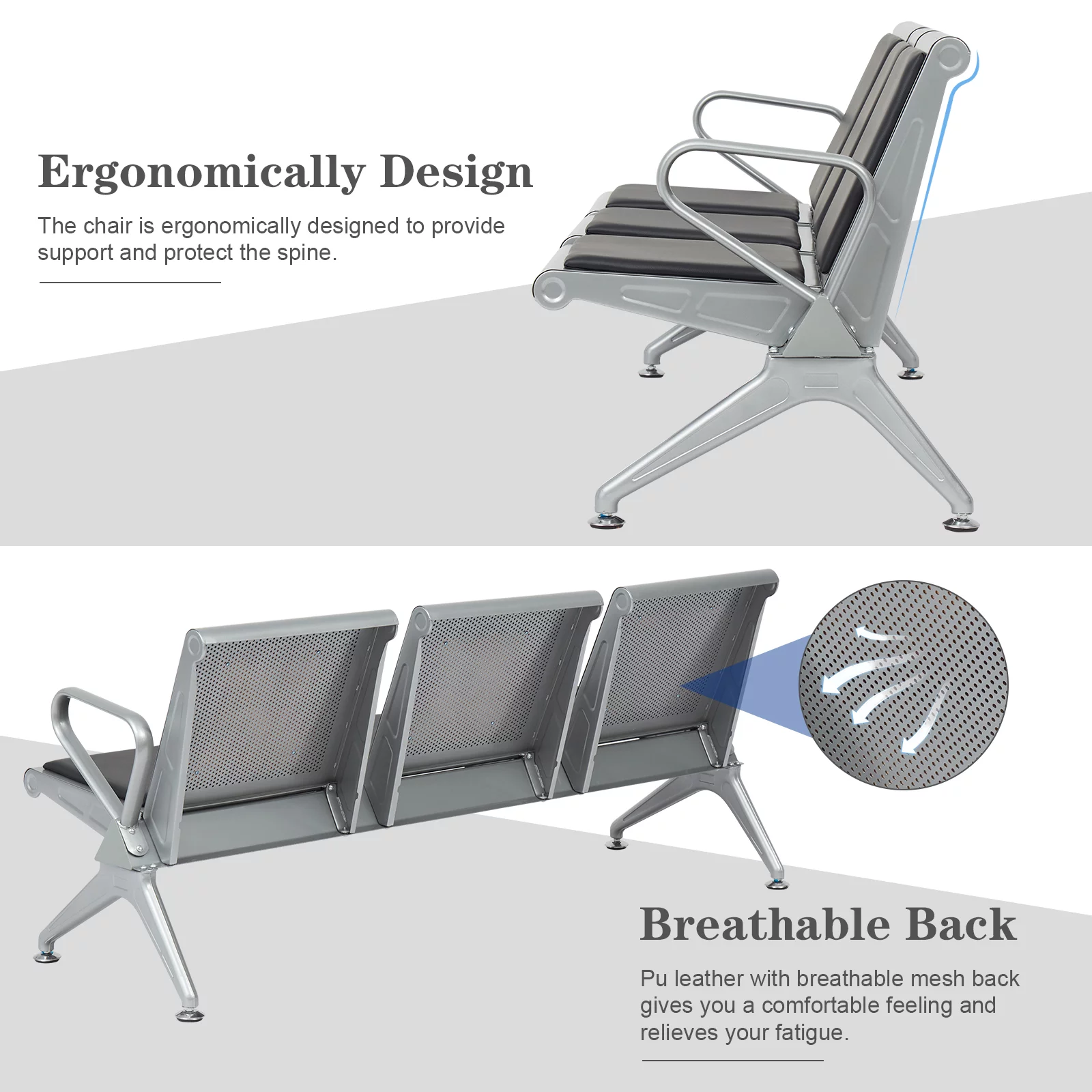 - Excellent Quality: Kinbor heavy duty waiting chair is made of high quality stainless steel and the overall frame is strong and durable. High-quality leather surface provides a comfortable experience.