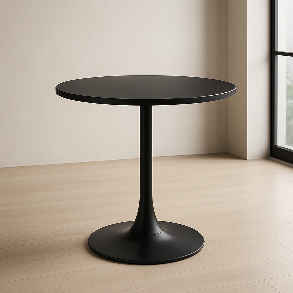 A compact, sturdy round table for cafés, kitchens, and small dining spaces with a clean matte-black finish.